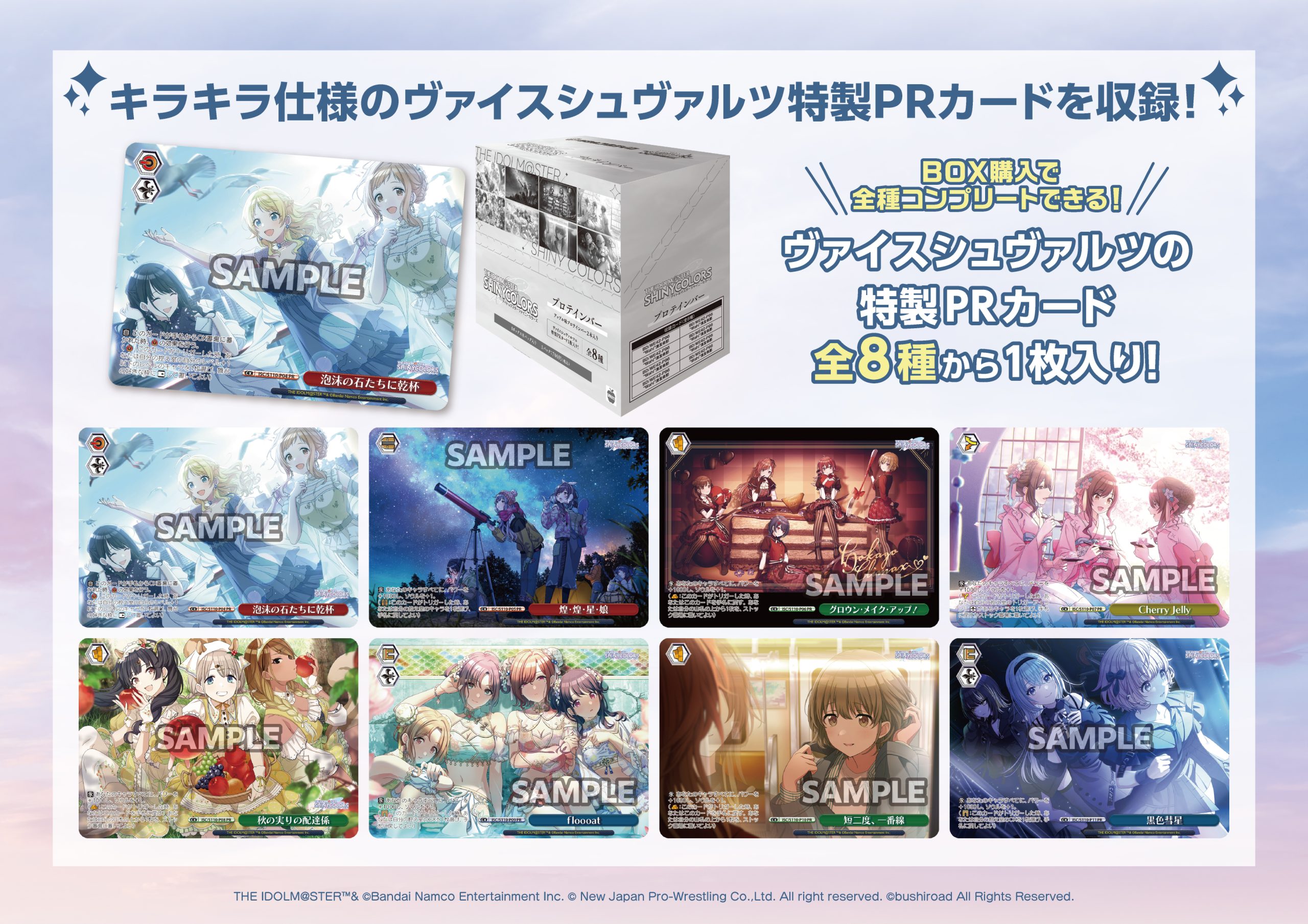 ヴァイスシュヴァルツ特製PRカードを1枚封入! カードはすべて、フレームレスのキラキラ仕様。